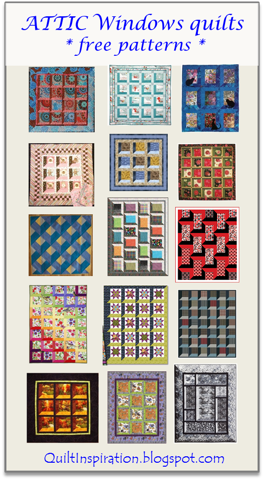 Image credits: Individual images are copyrighted by their owners. Please respect their generosity in sharing their free patterns, and the restrictions they have placed on the use of these designs; complete information can be found at the designers' websites provided in the links. The photo montage shown on this page is a derivative work that is the property of Quilt Inspiration. If any links are broken, we'd love to know so we can fix it. Please email us at QuiltInspiration {at} gmail {dot} com.